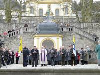 31. Kreuzweg der Soldatenfamilien auf's Würzburger Käppele | | | Würzburg, 29.03.20009. Schon traditionell lud der Katholische Standortpfarrer aus Veitshöchheim, Herr Militärpfarrer Martin Klein, Soldaten, Soldatenfamilien, zivile Mitarbeiter sowie Angehörige und Freunde der katholischen Militärseelsorge zum Kreuzweg am 5. Fastensonntag um 13.00 Uhr ein. Bei herrlichem Sonnenschein trafen sich ca. 120 Teilnehmer an der ersten Station des Kreuzweges am Würzburger Käppele. Das Heeresmusikkorps 12 aus Veitshöchheim stimmte mit einem Choral die Gemeinde ein. Militärpfarrer Klein und 2 Vorbeter aus dem Mitarbeiterkreis des Katholischen Militärpfarramt Veitshöchheim trugen zu den einzelnen Stationen abwechselnd Texte vor. Gemeinsam gingen die Gläubigen betend und singend den Kreuzweg hoch bis zur Wallfahrtskirche.