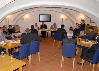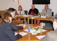 "Lebenskundlicher Unterricht bleibt Herausforderung und Chance für die Militärseelsorge"Medienempfang des Katholischen Militärbischofs in Berlin | | Während der Fragerunde: Marlene Beyel, Leiterin des Referats Presse- und Öffentlichkeitsarbeit, Militärbischof Dr. Mixa und Oberst i. G. Gerhard vor den Journalisten | Berlin, 22.04.2009. Der durch den Bundesminister der Verteidigung, Dr. Franz Josef Jung, zu Beginn dieses Jahres neu geregelte Lebenskundliche Unterricht für Soldatinnen und Soldaten stand im Mittelpunkt des alljährlich stattfindenden Medienempfangs, zu dem Militärbischof Dr. Walter Mixa die in der Bundeshauptstadt vertretenen Journalistinnen und Journalisten eingeladen hatte.