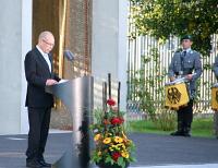 Den Festakt, zu dem sich Bundespräsident Prof. Dr. Horst Köhler und alle weiteren Repräsentanten der Verfassungsorgane, ehemalige Verteidigungsminister und Staatssekretäre, Soldatinnen und Soldaten befreundeter Streitkräfte sowie weitere Repräsentanten aus Kirchen, Politik und Öffentlicher Verwaltung einfanden, eröffneten der Katholische Militärbischof für die Deutsche Bundeswehr, Dr. Walter Mixa und der Evangelische Militärbischof, Dr. Martin Dutzmann, mit einer Andacht. In der Begrüßung erinnerte Militärbischof Dr. Walter Mixa mit Blick auf das Ehrenmal an das Engagement der Militärseelsorge. Mixa wörtlich dazu: „Zugleich ist dieses Ehrenmal ein Zeichen öffentlicher Trauer.“ Und weiter: „Wir Militärseelsorger wissen um die Trauer der Zurückgebliebenen. Seit Bestehen der Bundeswehr begleiten wir die Soldatinnen und Soldaten zu Hause und im Einsatz und stehen ihnen und ihren Angehörigen in den Zeiten der Trauer und scheinbarer Trostlosigkeit bei, wenn Kameraden und Mitarbeiter ums Leben gekommen sind. Wir wissen um die existenziellen Ängste in den Familien, wenn Angehörige im Einsatz sind und bieten ihnen Hilfe und Unterstützung an.“ Die Ansprache des Evangelischen Militärbischofs, Dr. Martin Dutzmann nahm Bezug auf einen Spruch in der Bibel im ersten Buch Samuel „Ein Mensch sieht, was vor Augen ist, der Herr aber sieht das Herz an.". Dutzmann fügte hinzu: “Mehr sieht er nicht." Zum Ende der Andacht beteten die Militärbischöfe Psalm 40, 1-4, 14, 17 – 18 sowie Fürbitten und gemeinsam mit den Festgästen das „Vater unser“. In der weiteren Begrüßung durch den Bundesminister der Verteidigung, Dr. Franz Josef Jung, in der er darauf hinwies, dass mit der Einweihung des Ehrenmals in der Geschichte der Bundeswehr „ein neues Kapitel“ aufgeschlagen wird, dankte er u. a. der katholischen und evangelischen Militärseelsorge und betonte: „In der Bundeswehr von heute, die von den Anforderungen der Einsätze geprägt wird, ist Militärseelsorge wichtiger denn je“. Die Gefühle der Trauer in den Familien, den Angehörigen, Freunden und Partner beschrieb Klaus Peter Diebel in seiner Rede. "Hinter jedem Namen steht ein Mensch – meistens ein sehr junger", sagte der Vater seines Sohnes, der 2007 in Afghanistan getötet wurde. An die Politik gewandt forderte er dazu auf, eine klare Sprache zu wählen und alle Dinge beim Namen zu nennen. "Wir können es ertragen, wenn man die realen Umstände beim Namen nennt", sagte Diebel. Bundespräsident Prof. Dr. Horst Köhler dankte in seiner Ansprache dem Bundesminister der Verteidigung, Dr. Jung dafür, dass er „die Initiative zur Errichtung dieses Ehrenmals“ ergriffen hat. Gleichzeitig betonte er, dass das Ehrenmal der Bundeswehr „keine falsche Heldenverehrung“ betreibt. Mit Blick auf die Einsatze der Bundeswehr, ihrer Ausrüstung und den Zielen und Fristen hob der Bundespräsident wörtlich hervor: „Ich wünsche mir darüber eine öffentliche Debatte, die aber zugleich geprägt ist von Anteilnahme und Respekt, von Sorge und Anerkennung für die Bundeswehr und ihren Dienst“. Nach der Enthüllung der Inschrift und Kranzniederlegung in der Cella des Ehrenmals endete der Festakt mit der Nationalhymne, die durch das Stabsmusikkorps der Bundeswehr unter der Leitung von Oberstleutnant Volker Wörrlein angestimmt wurde. Text: Josef König Bilder: Hauptfeldwebel Frank Eggen (KMBA) Weiteres siehe unter militaerseelsorge.bundeswehr.de ![]() ![]() |