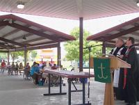 Was ist „Kirche“?Ökumenisches Gemeindefest im Biggs-Park | | | Fort Bliss, 11.09.2009. Eine Demonstration von fröhlichem Gemeindeleben wurde es erneut, als die Teams der Evangelischen- und Katholischen Militärseelsorge am Samstag, dem 22. August, wieder in den „Biggs-Parks“, einer der vielen Freizeiteinrichtungen für die amerikanischen Armee-Angehörigen und deren Familien in Fort Bliss, eingeladen hatten. Bereits zwei Stunden vor der Veranstaltung hatten sich fleißige Helfer der Gemeinden um den Vorsitzenden des evangelischen Gemeindebeirates, Oberstleutnant Wolfgang Rasquin, den Sprecher des katholischen Mitarbeiterkreises, Hauptmann Stefan Eich, und die beiden Pfarrer versammelt, um sicherzustellen, dass das alljährliche Gemeindefest auch wirklich wieder gelingt.