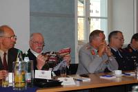 Prof. Dr. Jörg Splett, der bis zu seiner Emeritierung 2005 Philosophische Anthropologie, Religionsphilosophie sowie Geschichte der Philosophie im 19. und 20. Jh. an der Philosophisch-Theologischen Hochschule Sankt Georgen lehrte, referierte in einem längeren Vortrag zum gewählten Thema und betonte dabei, dass die Gottesfrage, sowohl traditionell als auch gegenwärtig, ihren zentralen Ort im Gewissen findet. Für den emeritierten Religionsphilosophen ist das Gewissen der Zentralort der Gottesfrage u. a. weil, so Splett wörtlich, „sich darin die Dimensionen des Normativ-Gesellschaftlichen wie des Unbedingt-Personalen treffen“. Zum Ende seiner Einlassungen übte Splett deutliche Kritik an den zwischenzeitlich stark ausgeprägten Formen eines fundamentalistischen Kreationismus und Evolutionismus. „Weil Gott“, so Splett, „nicht mit Methoden der Naturwissenschaften erklär- und beweisbar ist, bedarf es auch philosophischer und theologischer Ansätze, um Antworten auf ein ‚Reden heute von Gott’ zu erhalten.“ Zum Ende des ersten Tages feierte Militärbischof Dr. Walter Mixa mit den zahlreichen Generalen und Admiralen in der Hauskapelle Sankt Michael eine Heilige Messe.