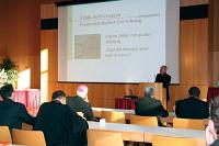 Weihbischof DDr. Losinger bei Militärseelsorgern"Keine grenzenlose autonome Selbstbestimmung" | | | Über ethische Grenzen gerade in den ökonomisch bedeutsamen Lebenswissenschaften Biomedizin und Gentechnik referierte bei den katholischen Militärseelsorgern zum Ende der diesjährigen Gesamtkonferenz Weihbischof DDr. Anton Losinger (Augsburg). Das für die Katholische Kirche in Deutschland vom Bundespräsidenten berufene Mitglied im gesetzlich neu geregelten Deutschen Ethikrat stellte dabei unter der leitenden Fragestellung, ob der Mensch zukünftig sein eigener Schöpfer werden könnte, sowohl Aufgaben, Arbeitsweise als auch ethisch bedeutsame Gesetzgebungsvorhaben in den Mittelpunkt seiner Ausführungen.