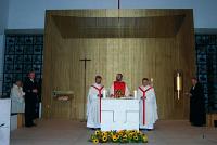 am Altar | Im Rahmen einer Heiligen Messe in der Standortkirche St. Louis und eines Empfangs im Unteroffiziers-Heim der Julius-Leber-Kaserne wurde Pfr. Pützer Anfang Oktober in sein neues Amt eingeführt. Bereits einige Wochen vorher war er aus Seedorf nach Berlin versetzt worden und hatte so im Sommer etwas Zeit zur Verfügung, um sich in der großstädtischen Umgebung einzuleben.