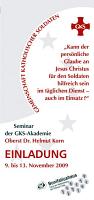 Vom 9. bis 13. November veranstaltet die „Akademie Oberst Dr. Helmut Korn“ im Bonifatiushaus in Fulda ein Seminar mit der Themenstellung: „Kann der persönliche Glaube an Jesus Christus für den Soldaten hilfreich sein im täglichen Dienst – auch im Einsatz?“
