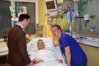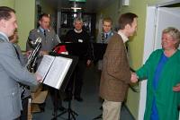 In kleinerer Besetzung als beim Gelöbnis tritt eine nur vier Mann starke Bläsergruppe dieses Stabsmusikkorps immer wieder kurz vor Weihnachten zur Freude der Patienten und der Pflegenden im Berliner Bundeswehr-Krankenhaus auf. Anders als auf dem Kasernenhof ist hier alles recht beengt und es sind eher die „leisen Töne“ gefragt. Weder die Büros der Krankenhaus-Seelsorger noch der „Raum der Stille“ bieten viel Platz, daher zieht das Quartett zusammen mit Pastoralreferent Heimbach und Pfarrhelfer Litschko mit ihren Klarinetten und Notenständern von Etage zu Etage. Während die professionellen Musiker auf den Fluren adventliche und weihnachtliche Weisen spielen, nutzen die beiden Vertreter der Katholischen Militärseelsorge die Gelegenheit, den Kranken – Bundeswehrangehörige wie auch Zivilisten – in den Zimmern, Genesungswünsche auszusprechen und sich für Gespräche anzubieten.