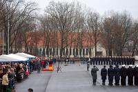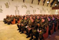 Ersteres mit seinen sechs Ausbildungskompanien in Berlin hatte kürzlich wieder einmal ein Feierliches Gelöbnis, und zwar auf dem Hubschrauberlande- und Protokollplatz vor der St.-Louis-Kirche, in der am Morgen zuvor auch der Gottesdienst zu diesem Anlass stattgefunden hatte. Kein Wunder, dass es bei solch einem Eid und Gelöbnis trotz trüben Winterwetters noch etwas förmlicher und schneidiger zuging als an anderen Standorten: Die Rekruten selbst sind in der kurzen Zeit seit ihrem Dienstantritt schon besonders im Exerzieren geübt, und die Ehrenformation und der Musikzug werden von den Kameraden des Wachbataillons und des Stabsmusikkorps gestellt, die sonst bei Staatsempfängen in der Bundeshauptstadt Dienst tun und somit öffentliche Auftritte gewöhnt sind. Soldaten des Wachbataillons unterstützen außerdem regelmäßig die Arbeit der Militärseelsorge, wie z. B. als Ministranten bei Pontifikalämtern in Berlin.